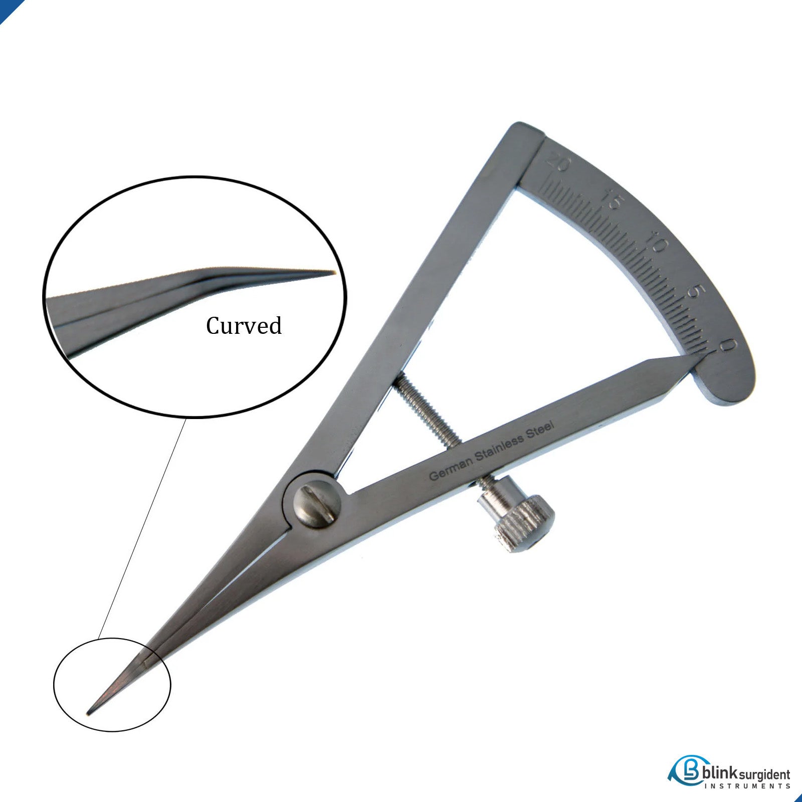 Castroviejo 20mm Calipers Curved Dental Orthopedic Measuring Instruments